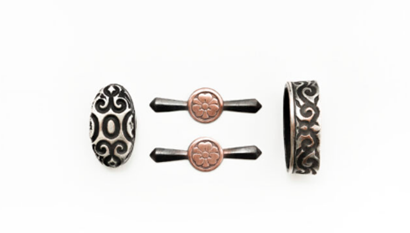 Tsukagashira: Cobre tallado, acabado en plata antigua